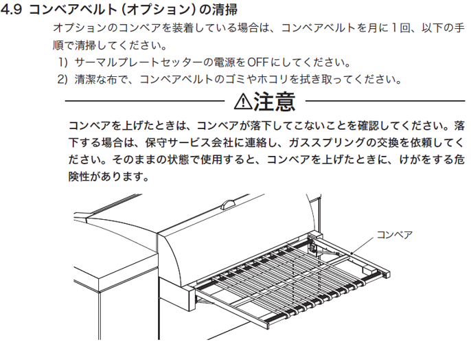 T-9800CTP HDNコンベアベルト(オプション)の清掃