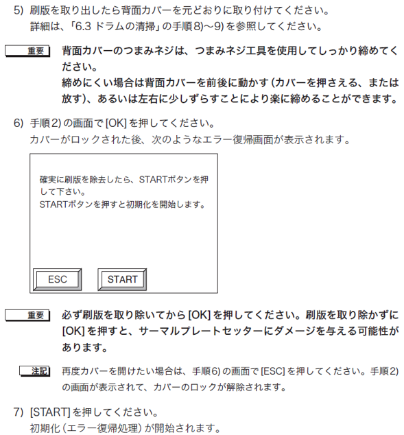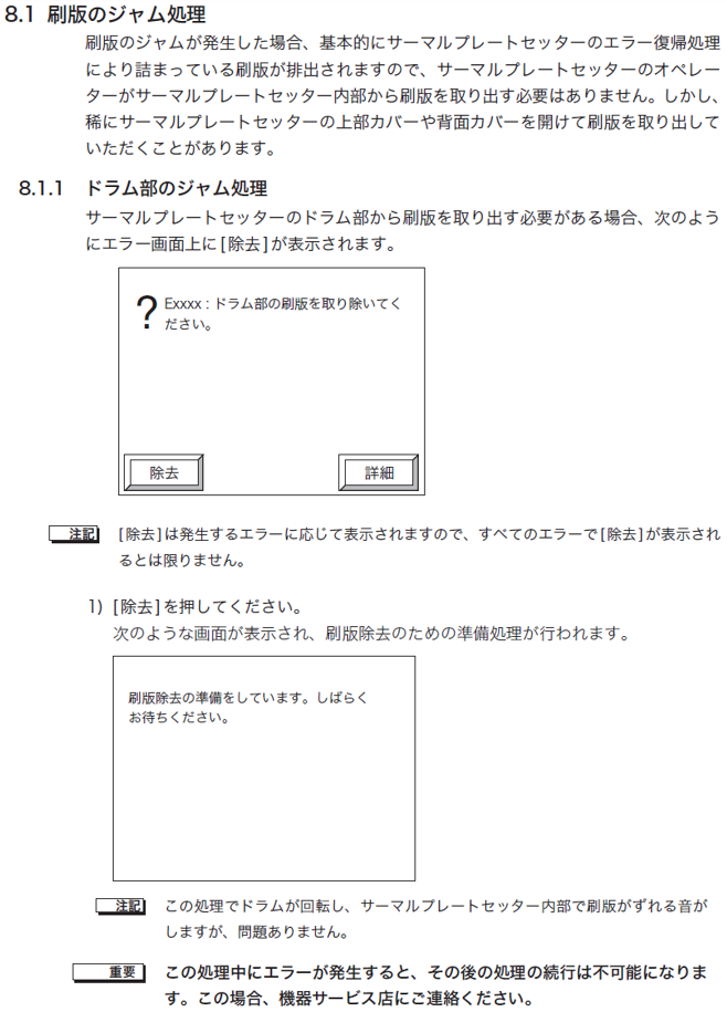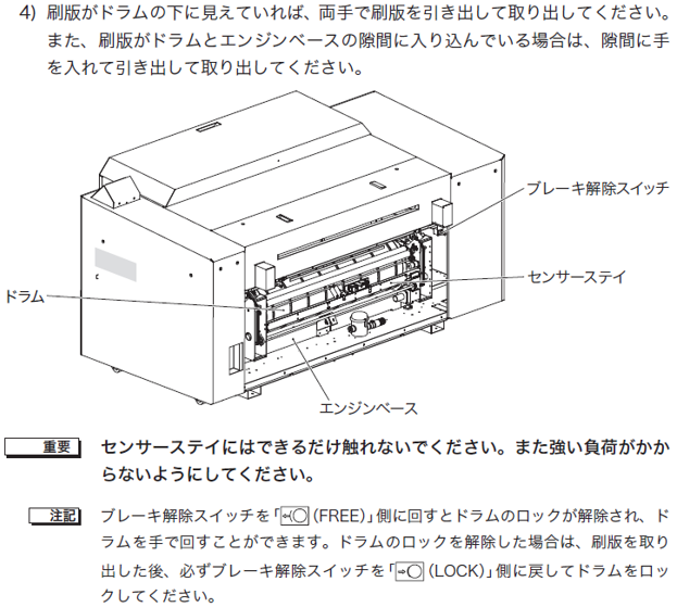 ドラム部の刷版ジャム発生時の対処手順をご説明します。