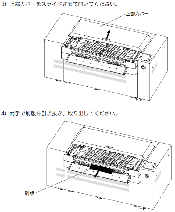 搬送部の刷版ジャム発生時の対処手順をご説明します。